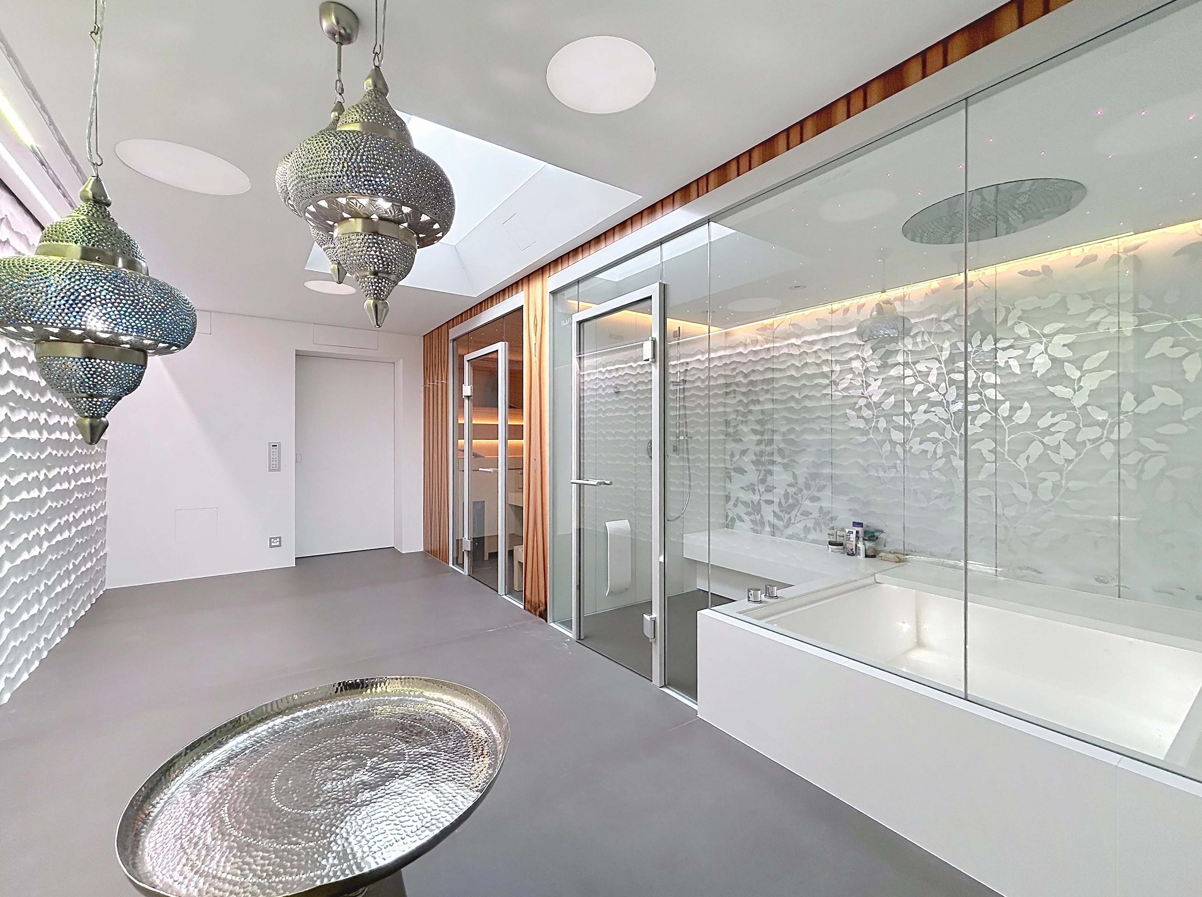 Développant une surface utile de 449 m², dont 355 m² habitables, cette propriété de 9.5 pièces séduit par ses volumes généreux, sa luminosité et ses 229 m² de terrasses au total, offrant une parfaite continuité entre intérieur et extérieur.