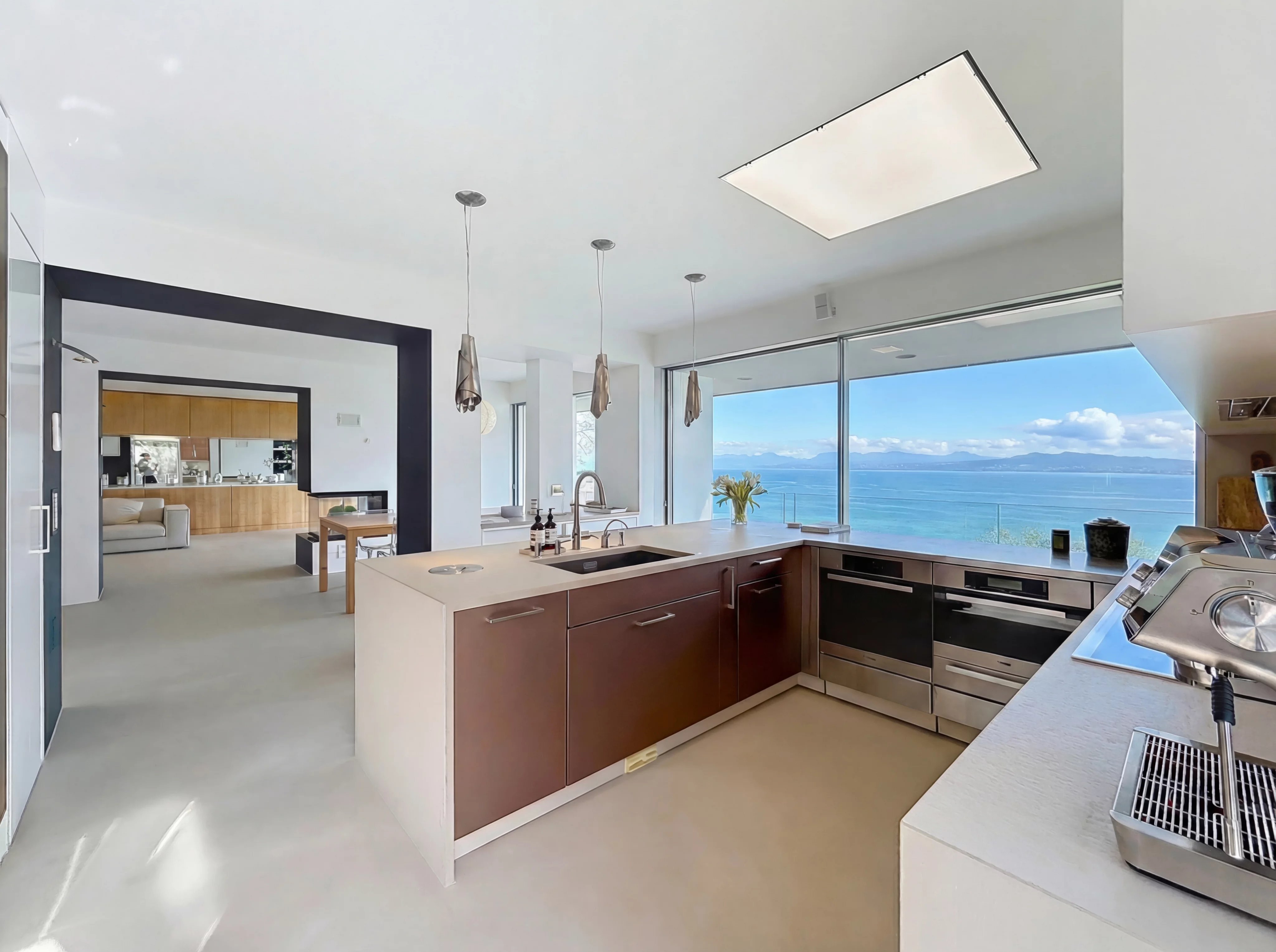 Son architecture intemporelle associe pierre naturelle et bois dans des lignes contemporaines. Les volumes lumineux, ouverts sur de larges terrasses, assurent une continuité fluide avec le paysage. La cuisine principale, haut de gamme et équipée d’électroménager de dernière génération, conjugue esthétisme et fonctionnalité.